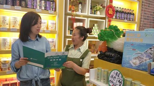 張立娟(左)向客戶宣傳“綠水青山 最美郵路”大慶站招商業務