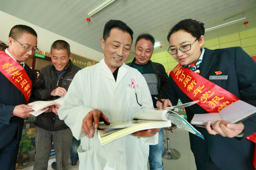 近日,江蘇省金湖縣郵政分公司黨委抽調20多位黨員骨干,組建了12支黨報黨刊發行工作突擊隊,以擴大郵政服務的廣度與深度,著力加強2019年度黨報黨刊訂閱工作,進一步發揮郵政企業黨報黨刊宣傳的陣地作用。圖為黨員突擊隊隊員到客戶身邊對黨報黨刊征訂工作進行宣傳。 □吉爾云 攝影報道