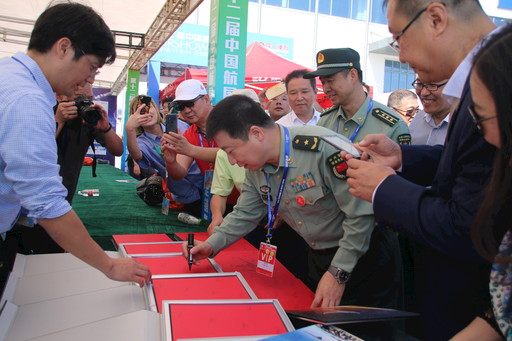 11月6日,第十二屆中國國際航空航天博覽會在珠海開幕,中國十大軍工企業首次大規模參展。開幕式后,中國進入太空第一人、太空郵局局長楊利偉來到二號館前的郵政服務點,看望慰問現場的郵政服務人員,并在航空航天主題郵品上簽名。