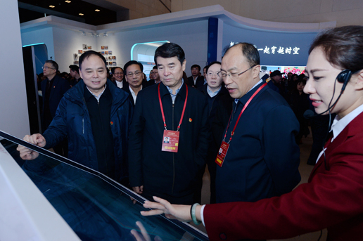 下午2時許,劉愛力帶領黨組成員和總部機關干部職工代表走進展廳參觀展覽。黨的十一屆三中全會等反映黨中央推進改革開放重大時間節點、重大歷史事件、重大決策部署的歷史照片,拉開中國農村改革大幕的安徽小崗村18位農民按下包產到戶“紅手印”的雕塑……逼真的實物模型、翔實的圖片圖表、豐富的視頻資料,吸引了大家的目光,他們不時停下腳步仔細觀看,聽取工作人員講解,并詢問有關情況。在《關鍵抉擇——黨中央推進改革開放的戰略擘畫》展區,大家駐足良久,認真聆聽、回顧了黨中央在重大時間節點、重大歷史事件中作出的重大決策部署,推進改革開放的頂層設計。