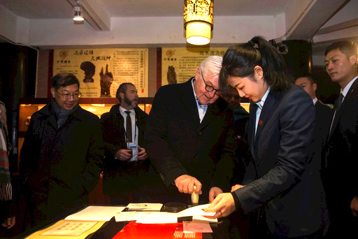 12月8日,德國(guó)總統(tǒng)弗蘭克·瓦爾特·施泰因邁爾到訪都江堰。在都江堰市秦堰樓景區(qū),施泰因邁爾總統(tǒng)(左三)被成都都江堰市郵政分公司展示的明信片吸引,選擇了一張熊貓主題明信片,親手加蓋了“熊貓之鄉(xiāng)都江堰”郵戳并留作紀(jì)念。
