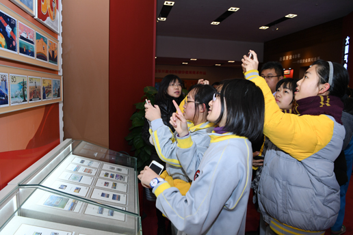 得益于改革開放,人民越來越幸福,國家越來越富強。在展覽現場,記者看到了來自村鎮的青年攜上兩頰紅撲撲、牙牙學語的孩童細細觀展,和熙熙攘攘的觀展者一樣,通過郵票,通過模型,通過各種各樣的展覽形式,感受改革開放涌動著的春天的氣息,感受春潮的激蕩。