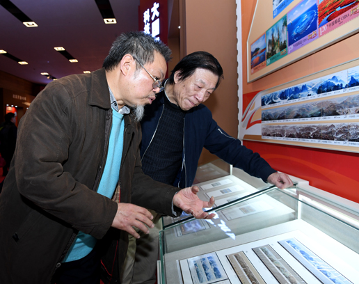 一說到郵票,兩位老者的話匣子就打開了。“郵票作為‘國家名片’,意義非常重大,但設計難度也大,一般來說,藝術家喜歡揮灑,喜歡在創作中發揮自己的想象力,但恰恰郵票設計具有嚴謹的科學性?!痹S仁龍介紹,在《長城》郵票中,地理方位一點都不能馬虎,長城的敵樓上有幾個射箭孔都要有出處、有講究;此外,郵票設計還要進行嚴謹的歷史考證,長城綿延一萬多公里,經過那么多省、市,沿途取景就需要仔細推敲,聽取專家意見,最終還要畫成一個藝術作品?!霸谠O計郵票時要充分體現藝術巧妙的融合性,要突破時空,令人有身臨其境之感,這又是一個難點?!睍r隔兩年,許仁龍回憶起郵票創作過程還是感受頗多,“長城是改革開放的一種精神象征,中國郵政將它繪制成郵票長卷是一種突破?,F在,這套郵票長卷在‘偉大的變革’展覽中展出,我深感榮耀和自豪,在此也要感謝改革開放給我們藝術創作帶來的新氣象?!?/p>