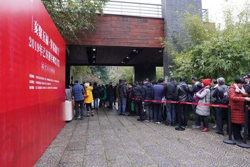 1月5日,浙江杭州煙雨濛濛,廣大集郵愛好者在位于西子湖畔的韓美林藝術館前排起了長隊(圖)。當天,韓美林藝術館舉辦了《己亥年》郵票首發式,“‘豬’事大吉”己亥年生肖畫展開展,集中展示韓美林先生融合傳統水墨和現代水彩畫效果于一體的作品。