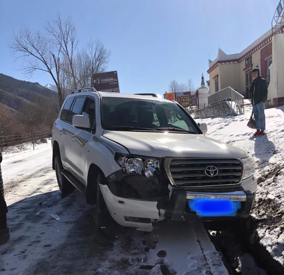 無(wú)奈之下我們改為第二天早上出發(fā),結(jié)果出發(fā)不久我們就體驗(yàn)了傳說中的蜀道之難。從康定市到甘孜縣全程300多公里,開車卻需要8個(gè)小時(shí),到處都是盤山路和冰面路段,中午11點(diǎn)53分,我乘坐的車輛突然打滑,追尾前面的轎車,一個(gè)輪胎沖進(jìn)了路邊的排水渠。