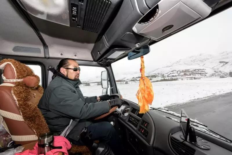 其美多吉已經(jīng)工作30年了,每次運(yùn)送郵件都是天不亮就出發(fā),迎著朝陽(yáng)在路上飛馳。給我印象最深的就是郵車?yán)锟臻g很小,勉強(qiáng)可以擠下3個(gè)人,而且每次過減速帶的時(shí)候,整個(gè)人都會(huì)被顛簸得飛起來。路上我問其美多吉,你們這個(gè)郵車駕駛室空間這樣狹窄,休息都很費(fèi)勁,不難受嗎?他卻說這輛車是新的,條件不知道比以前好多少倍。以前的車?yán)镞B空調(diào)都沒有,一開起來灰塵也很大,這輛新車有空調(diào),有一個(gè)小小的臥鋪,還有GPS定位,他非常滿意。