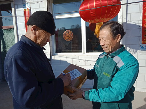 “茂田叔,這是您親戚從內(nèi)蒙古包頭寄來的包裹,還有我給您從縣城藥店捎回來的藥以及藥品的說明書。我托人在A4紙上放大又重新印了一份,也在袋子里放著呢,啥時候快吃完了就招呼我一聲。眼瞅著就快過年了,家里頭都張羅妥沒?缺啥您就張口。”在曹家窯村村民林茂田家,劉錦富一邊遞上包裹與藥,一邊熱情地與老人打著招呼。林茂田的子女都在外地工作,平時只有他和老伴兒在村子里,劉錦富常常利用工作之余幫著老人打理一下家務(wù),順道捎帶一些必需品和常用藥品。“這馬上就過年了,你還歇不下了?”林大爺有些心疼地問。“臨近過年了,不少快遞公司都停業(yè)了,但我們郵政是快遞的‘國家隊(duì)’,講的是責(zé)任與擔(dān)當(dāng),全年無休。有人的地方就要有郵政,一份報紙也要送,一個包裹也得投。”劉錦富邊說邊往門外走去。
