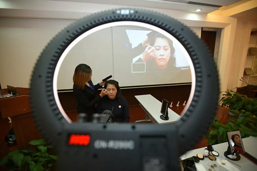在西城區分公司舉辦的“畫出上會服務的最美風景”妝容培訓課上,20余名兩會上會服務的女員工正在聚精會神地練習著職業妝化妝手法,來自國際化妝大賽的評委老師簡練而專業地為女員工們講解著化妝技巧。課程結束后,員工們均表示受益匪淺,通過學習提高了自己的化妝水平,可以把自己最佳的狀態呈現在用戶面前,以示禮貌和尊重。