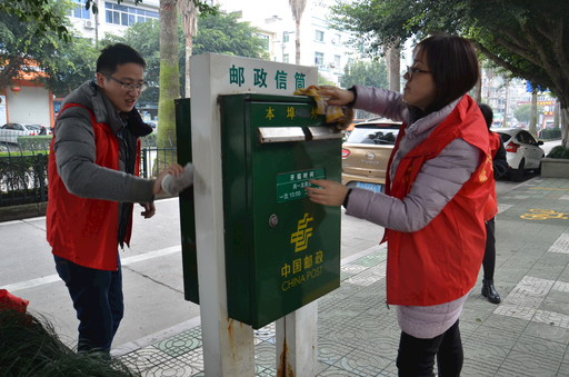 3月5日,浙江省玉環(huán)市郵政分公司開展了“擦亮‘郵名片’”志愿活動,組織廣大黨員志愿者對街頭的E郵柜、信箱、信筒進(jìn)行清洗。此次志愿活動展現(xiàn)了玉環(huán)市分公司黨員積極向上的精神風(fēng)貌。□葉瑋 攝影報道