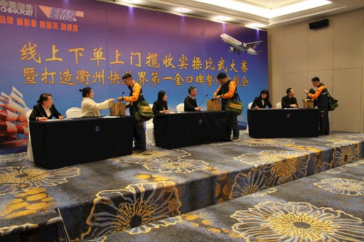 3月31日晚,浙江省衢州市郵政分公司舉行全市線上下單上門攬收實操比武大賽暨打造衢州快遞界第一金口碑誓師啟航會。各縣(市)寄遞事業部、市本級各綜合營業部共組成10支代表隊,每支參賽隊由3名攬投員組成。各參賽隊根據比賽要求,結合工作實際,展示了攬投人員在操作技能、服務用語、禮儀規范等方面的能力與素養。□馮君  攝影報道