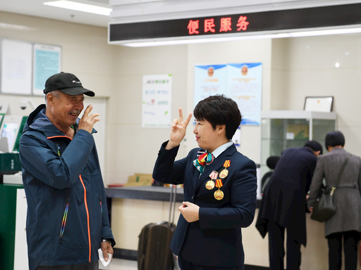 4月15日,《經(jīng)濟(jì)日?qǐng)?bào)》《工人日?qǐng)?bào)》等中央媒體來(lái)到北京東四郵局,對(duì)有著百年歷史和60多年親情服務(wù)傳統(tǒng)的品牌局所進(jìn)行采訪。東四郵局以服務(wù)起家,靠服務(wù)看家,送服務(wù)到家,一直把服務(wù)社會(huì)作為永恒主題,始終把服務(wù)人民放在第一位,形成了“用戶是親人”服務(wù)理念下的親情服務(wù)文化,被譽(yù)為京城郵政服務(wù)的“親情驛站”、首都銀街上的“親情信使”。圖為采訪當(dāng)天,全國(guó)勞動(dòng)模范、東四郵局局長(zhǎng)助理陳蘭穎為聽(tīng)力障礙用戶提供手語(yǔ)服務(wù)。 □記者 李旭昌 攝影報(bào)道