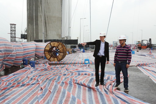 鄭硯平(左)于通車前夕再次來到南沙大橋施工現場做貸后檢查。張軼博  攝