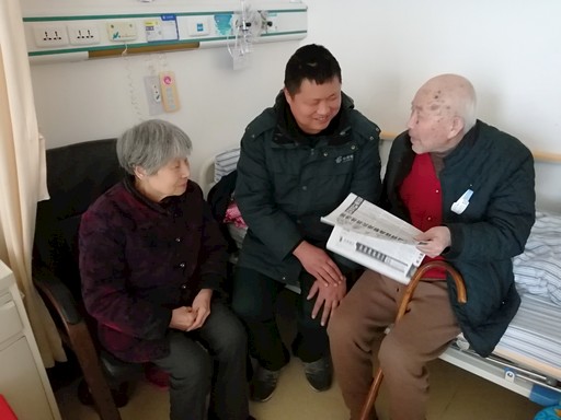 湖北省十堰市郵政分公司深入開(kāi)展“比服務(wù)比質(zhì)量比貢獻(xiàn),爭(zhēng)創(chuàng)十星投遞員”活動(dòng),充分調(diào)動(dòng)投遞員爭(zhēng)先創(chuàng)優(yōu)的積極性和主動(dòng)性,使投遞服務(wù)質(zhì)量大幅提升。圖為三堰投遞站投遞員鄧大亮(中)為住院用戶(hù)送去當(dāng)日?qǐng)?bào)紙。□王龍鳳 攝影報(bào)道