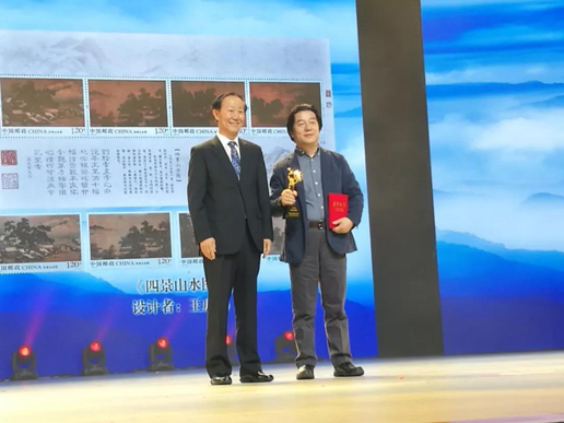 國家郵政局局長馬軍勝、中國郵政集團公司董事長劉愛力為優(yōu)秀郵票獎獲獎者頒獎。