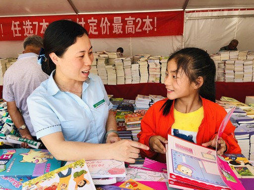 4月19日,在世界讀書日即將來臨之際,云南省紅河哈尼族彝族自治州建水縣郵政分公司聯(lián)合縣文明辦等單位舉辦的“全民閱讀 書香建水”大型圖書活動啟動?;顒訚庥舻臅惴諊艿绞忻竦臍g迎,為建水縣精神文明建設(shè)貢獻一份力。圖為建水縣朝陽北路營業(yè)所營業(yè)員為兒童講解圖書內(nèi)容?!踮w祝甜 攝影報道