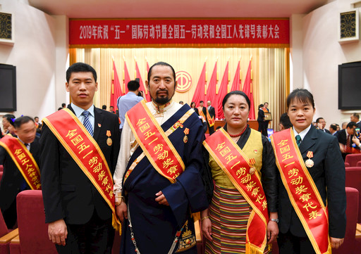2019年4月23日,慶祝“五一”國際勞動節暨全國五一勞動獎和全國工人先鋒號表彰大會在京召開。郵政系統7人獲全國五一勞動獎章、9單位獲全國工人先鋒號,其美多吉、柴閃閃、益西卓嘎、韋艷梅作為代表,受邀進京參加表彰大會。