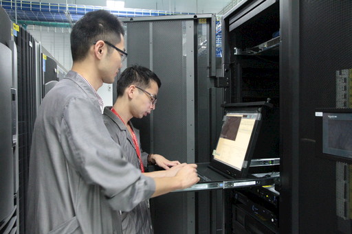 合肥數(shù)據(jù)中心技術人員檢查機房運行情況。