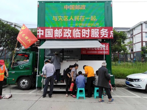 為迅速落實劉愛力的工作要求,確保郵政服務在震區不中斷,宜賓市郵政分公司通過緊急調派和借用的方式,為長寧縣雙河、龍頭,珙縣珙泉3個網點配備了流動服務車。6月19日18:30,隨著龍頭郵政支局流動服務車的調試成功,長寧縣、珙縣所有受災網點全部恢復營業。
