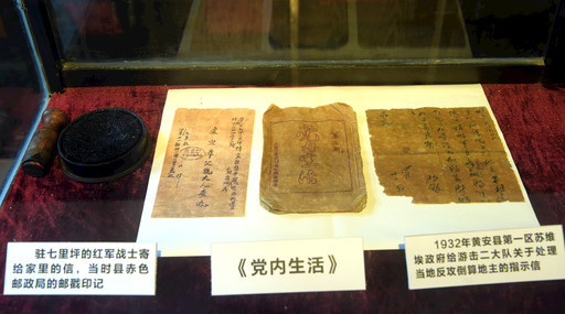 紅安縣赤色郵政局里,展示著象征紅四方面軍、紅二十五軍、紅二十八軍“三軍合一”的紅旗以及《小平您好》《中國夢》《中國工農(nóng)紅軍長征勝利八十周年》等紅色郵品;懸掛著《董必武同志誕生一百周年》《徐向前同志誕生九十周年》《中國人民解放軍大將王樹聲》等紀(jì)念郵票;陳列著黨在土地革命時(shí)期的指示信、紅軍家書和赤色郵政工作服、郵包、郵戳、草鞋、蓑衣、斗笠等用品用具,已有數(shù)千人到此接受愛國主義教育。