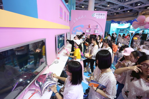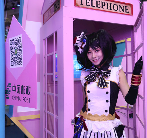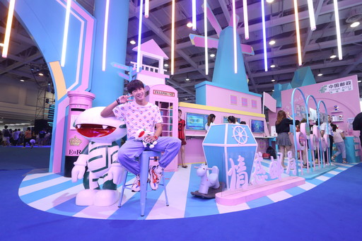 以淺藍、粉紅為主色調的郵政展區撥動了無數少女的心,cosplay模特也前來體驗。