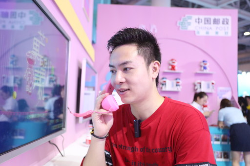 粉藍相間的主體配色、浪漫的彩色燈飾少女心十足,4臺聲音明信片錄制設備科技感滿滿......中國郵政的展區就在主舞臺的旁邊。“00后”女孩沈佳珎剛剛在這里制作完一張聲音明信片,便急不可待地向朋友們展示她的“成果”。“沒想到明信片也有這么新穎的傳遞方式。”她掃描明信片上的二維碼,嘗試著回放自己剛剛錄制的聲音。聲音明信片錄制設備,可以將心里話錄制下來,生成二維碼,即時打印在明信片上。為了體驗制作聲音明信片,大家排起了長隊,成為展場的一道風景線。