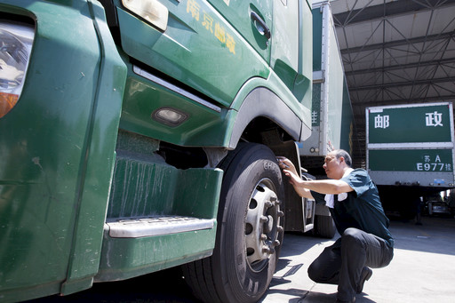 圍繞“戰(zhàn)高溫、保安全”的主題,南京郵區(qū)中心局結(jié)合夏季生產(chǎn)運(yùn)行特點(diǎn),近期開展了一系列車輛巡檢工作,確保行車安全。圖為該中心局干線班副班長(zhǎng)劉毅正頂著炎熱對(duì)出班郵車進(jìn)行檢修。 □徐行 攝影報(bào)道