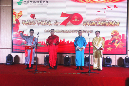 郵儲銀行福建省寧德市分行黨委舉辦了“迎70周年國慶”主題演講比賽。比賽采用雙人演講的形式,11支代表隊的選手聲情并茂地用小故事、小視角呈現(xiàn)對祖國的無限熱愛。員工們表演了令人捧腹大笑的“三句半”,深情演唱了《紅旗飄飄》《我和我的祖國》等愛國歌曲。阮玲玲 攝影報道