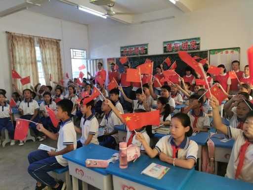 國慶前夕,廣東省深圳市郵政分公司義工隊組織15名志愿者,赴省定貧困村東源縣船塘鎮(zhèn)凹頭村,開展了“不忘初心 與愛同行”志愿活動,與船塘第一小學的同學們共迎國慶。