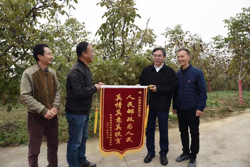 在上河村核桃林,劉愛力一行聽取了集團公司派駐上河村開展扶貧工作的第一書記王海珍關(guān)于核桃種植項目的情況介紹,詢問了當?shù)睾颂曳N植以及群眾收益情況。當他了解到通過開展電商銷售及林下種植,當?shù)刎毨魬艟暝鍪?600元以上,高興地連聲說好。他同時對郵政扶貧干部長期以來的辛勤工作表示感謝,鼓勵他們要克服困難,要在駐村工作的過程中有所收獲?!案兄x郵政扶真貧!”上河村村委會代表激動地向劉愛力贈送了寫有“人民郵政為人民 真情真意真扶貧”字樣的大紅錦旗,不住地表達著對于郵政扶貧工作和郵政扶貧干部的真誠感謝。