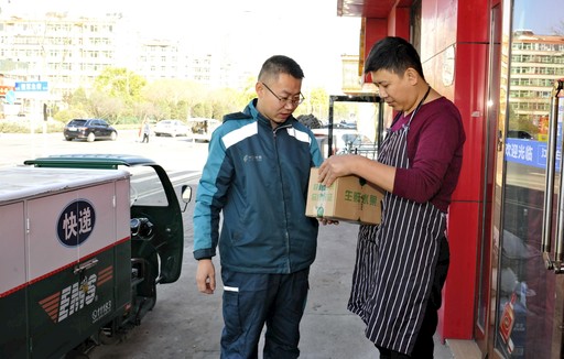 “我剛過零點下的單,沒想到這么快就能收到,郵政真是神速!”11月11日上午10點,山西省太原市郵政分公司電商園區塢城路投遞組投遞員王海平將郵件交到客戶宋旭飛的手中。當天8點前,電商園區就已收到訂單2600余單,這批訂單全部在“雙11”當天的第一頻次投遞。 □山西記者 裴效華 攝影報道