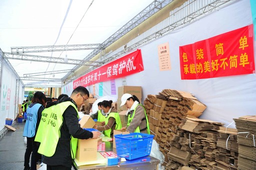 云南省大益普洱茶一直以來(lái)是“雙11”天貓茶行業(yè)的“銷(xiāo)量王”。經(jīng)過(guò)4年的深度合作,今年“雙11”,昆明市郵政分公司成了大益普洱茶唯一快遞服務(wù)商。截至11月11日10點(diǎn)30分,大益普洱茶訂單量超過(guò)12萬(wàn)件。圖為昆明市分公司員工為客戶提供分揀、理貨、打包、運(yùn)輸?shù)热h(huán)節(jié)服務(wù)。□云南記者 楊曉穎 攝影報(bào)道