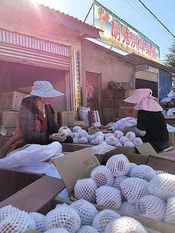 2015年,經過培訓后,老胡硬著頭皮開起了淘寶網店、郵樂網店?!班]政公司的人手把手教我。剛開始不懂營銷,我只能用傻辦法,見人就添加QQ好友、加微信,發網店地址,有時還免費寄給他們品嘗。”老胡說,剛開始微信好友加了80多人,一年賣出兩萬多斤蘋果。