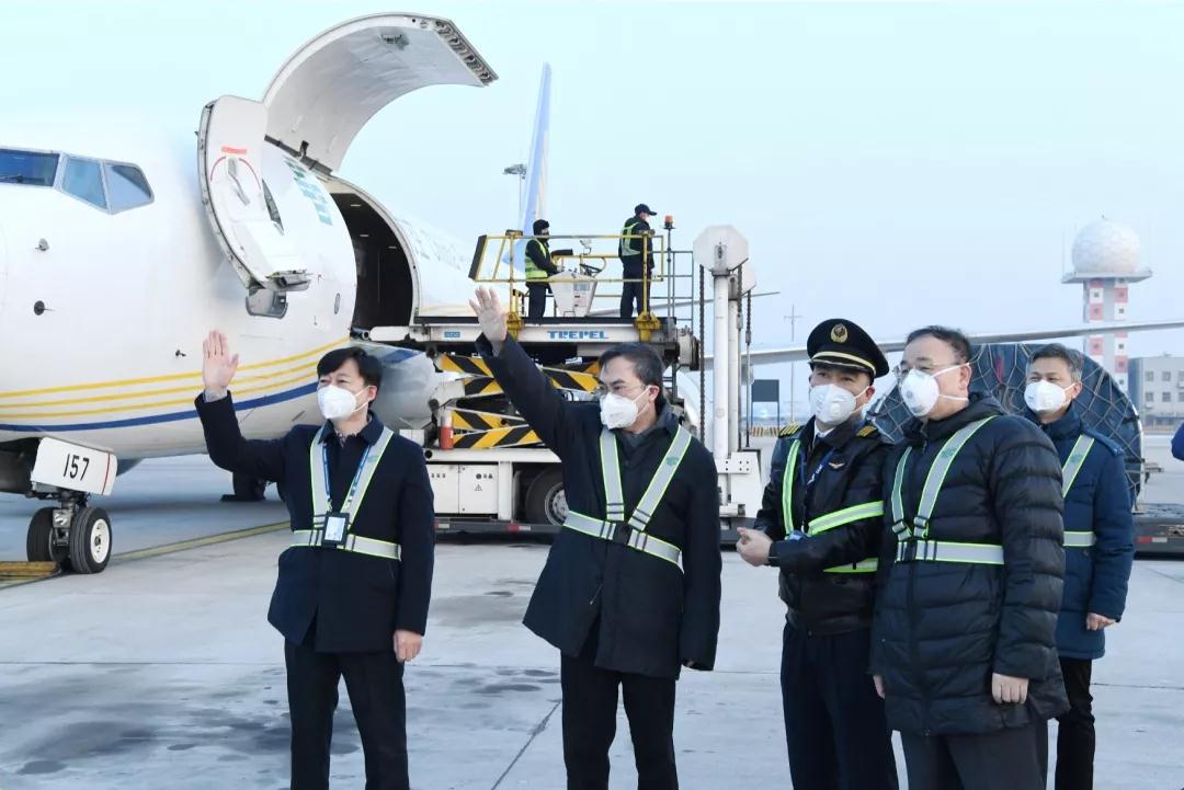 來到郵航停機位,馬軍勝、劉愛力詳細了解了郵航疫情防控和郵航執飛防疫物資專機情況,詢問郵航飛機使用年限、裝載量等,察看了物資裝載和飛行準備作業。登上飛機,馬軍勝、劉愛力關切地詢問機組人員的身體狀況,叮囑機組人員一定要做好安全防護,在確保個人安全的前提下,完成好專機執飛任務,確保將防疫物資及時、安全地運達武漢疫情重災區。看著專機緩緩滑向跑道,馬軍勝、劉愛力向執飛機組揮手致意,并一直目送專機起飛。