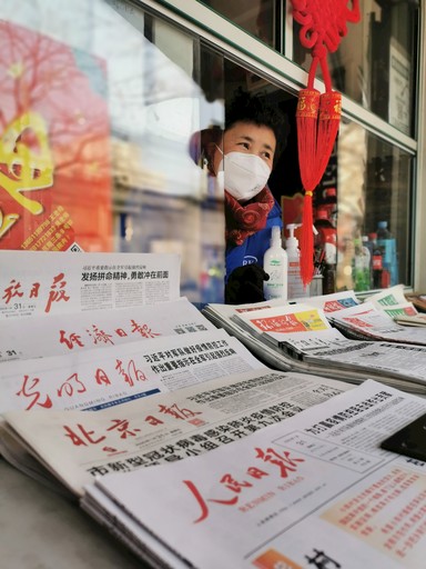 9:30,一位老大姐過(guò)來(lái)買(mǎi)《北京日?qǐng)?bào)》和《參考消息》,還有人來(lái)打聽(tīng)晚報(bào)和疫情情況;9:40,一個(gè)快遞小哥兒習(xí)慣地把車(chē)停在報(bào)刊亭旁邊,掃碼4塊錢(qián)買(mǎi)了《北京日?qǐng)?bào)》《參考消息》《環(huán)球時(shí)報(bào)》,直說(shuō)好幾天沒(méi)看報(bào)了。從除夕到初七,這個(gè)報(bào)刊亭銷(xiāo)售報(bào)刊1599元,《人民日?qǐng)?bào)》《北京日?qǐng)?bào)》《參考消息》《北京晚報(bào)》累計(jì)銷(xiāo)售近500份。