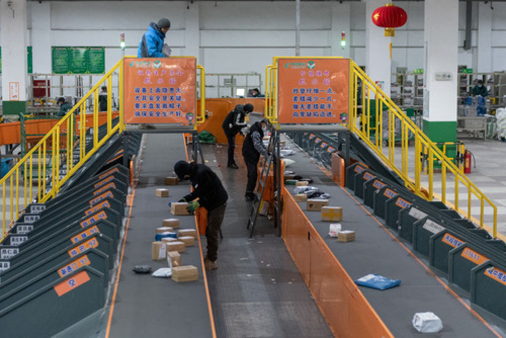 記者在現(xiàn)場看到,數(shù)名戴著口罩的工作人員正在郵件分揀輔助設(shè)備上緊張工作,傳送帶上的郵件包裹經(jīng)辨認(rèn)后會被放置于不同目的地的小隔欄中,央珍的就業(yè)材料也將在此被分揀后運送到目的地。