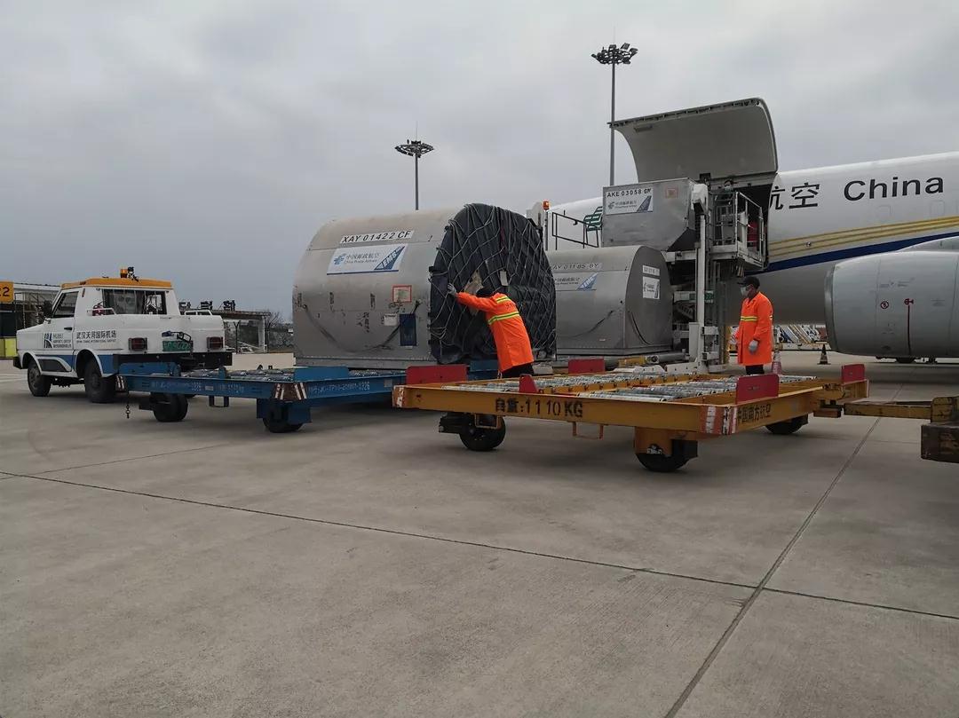 11時,在“南京—武漢”航線正班執行的同時,郵航接到上級部門轉發的運輸援助武漢防疫醫療物資的交通運輸部任務指令,郵航迅速調配飛機,運行控制系統、飛行系統、機務系統、地面保障系統立即響應,為該批物資開啟空中快速通道。15時,承運著12.1噸物資的郵航CF9125(南京—武漢)從祿口機場起飛,15時55分飛抵天河機場,物資快速完成從空側向陸側的移交。至此,郵政航空在打贏防控疫情阻擊戰中,累計執行運輸醫療物資專機13班,中國郵政空中綠色通道累計運輸防疫醫療物資152.55噸。