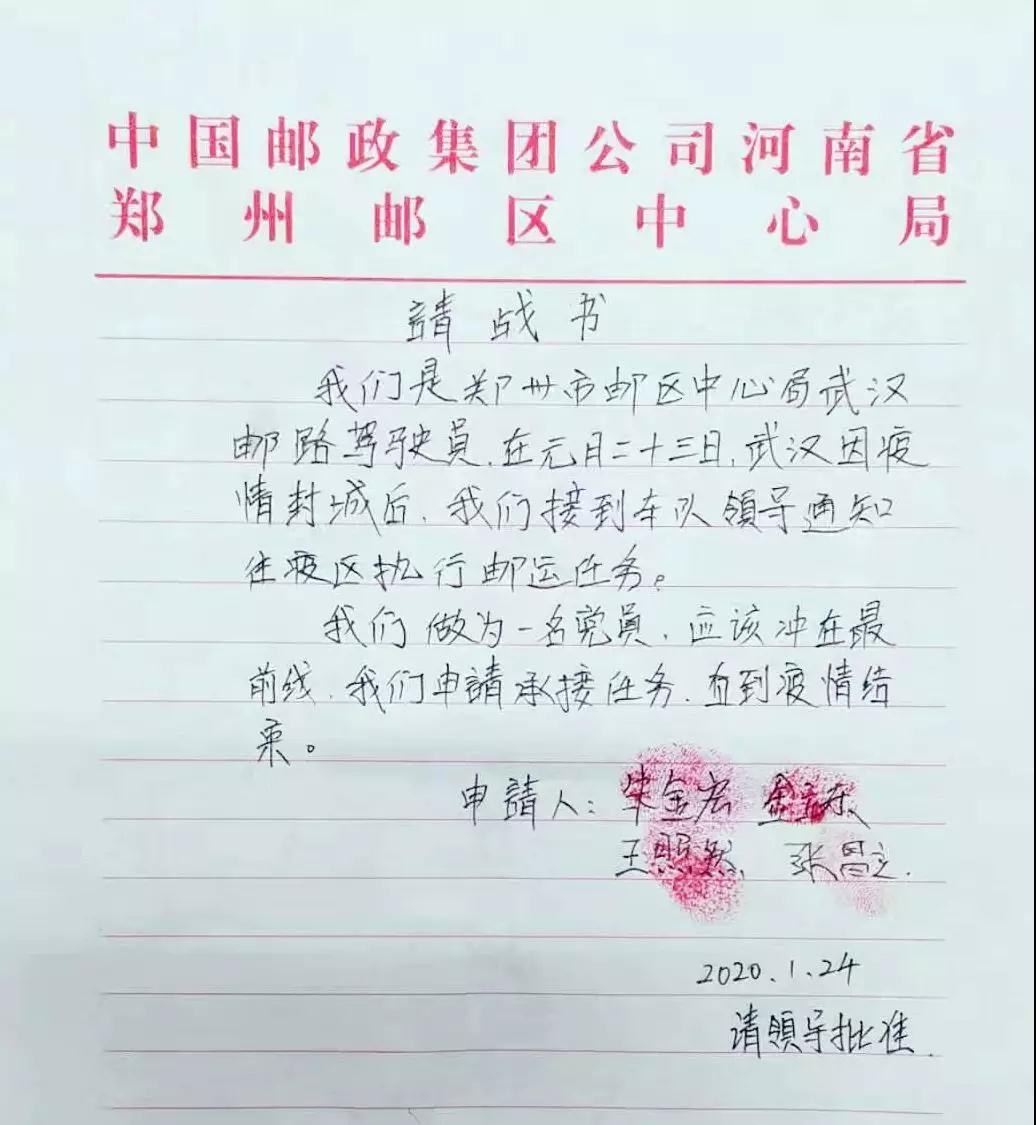 “這是1月23日武漢封城后,我第4次執(zhí)行往武漢運(yùn)送醫(yī)療物資的任務(wù)。因?yàn)閺幕貋?lái)后都要接受隔離觀察,吃住在單位,可能長(zhǎng)時(shí)間都回不了家。為了大家的生命安全和身體健康,面對(duì)這項(xiàng)特殊的任務(wù),我和王照然、朱金宏、金玉東等武漢郵路的黨員們一起向運(yùn)輸中心黨支部遞交了請(qǐng)戰(zhàn)書(shū),自愿承擔(dān)武漢郵運(yùn)任務(wù),直至疫情結(jié)束。從大年初一到現(xiàn)在,我已經(jīng)一個(gè)星期沒(méi)有回家了,但是作為一名共產(chǎn)黨員,也是一名退伍老兵,我認(rèn)為這是我應(yīng)該做的。” 張昌立說(shuō)。