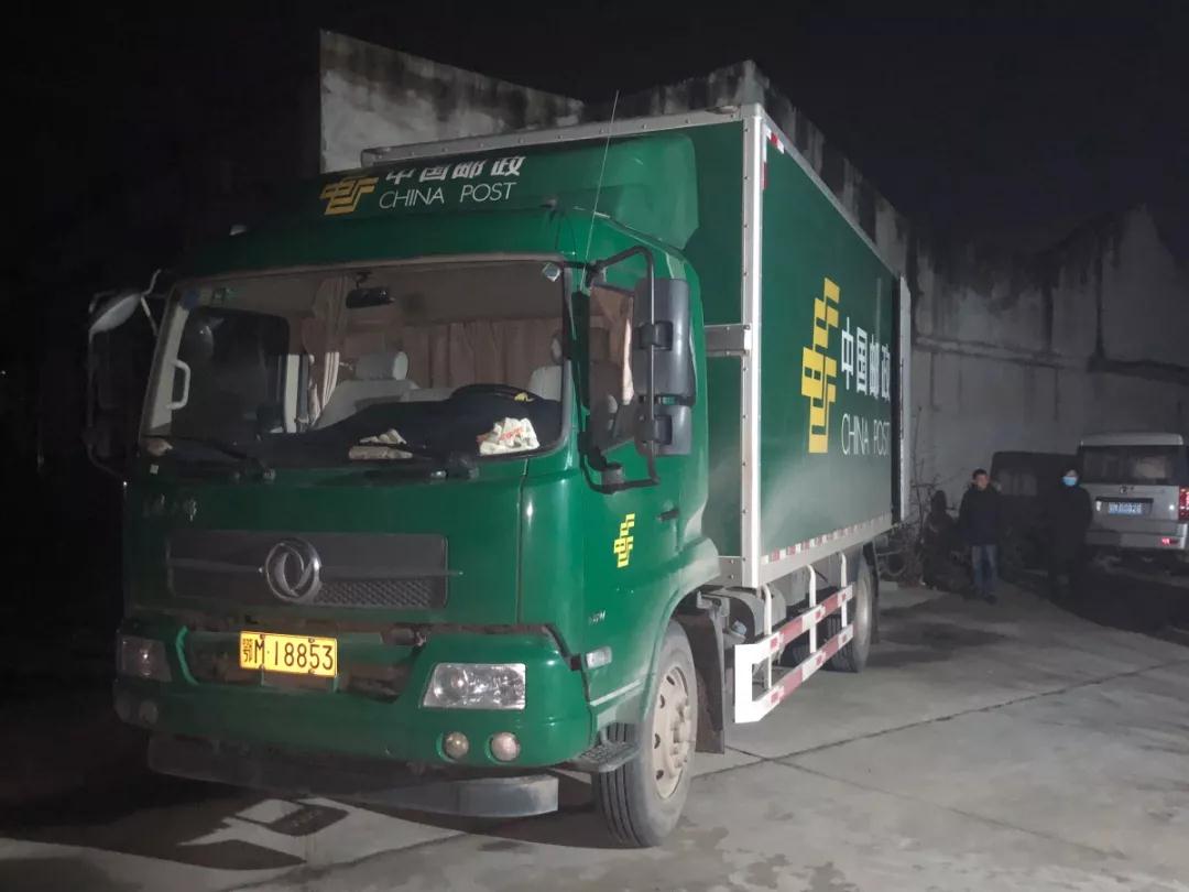 23時30分,2萬件防護服共計400箱物資在彭場工業(yè)園開始裝車。在2個多小時的裝車工作后,27日凌晨2時,滿滿一車的防疫物資由駕押員廖棟駕駛郵車送往武漢。