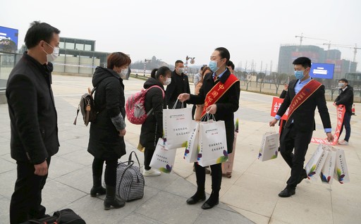 2月20日,“畢海同心、雙戰雙贏”貴州畢節至浙江海寧務工人員返程專列歡送儀式在畢節市舉行。郵儲銀行畢節市分行、畢節市人力資源和社會保障局、畢節市郵政分公司聯手為每一位務工人員準備了一份含口罩、方便面、八寶粥等物資的防疫“郵愛禮包”,共計600余個。