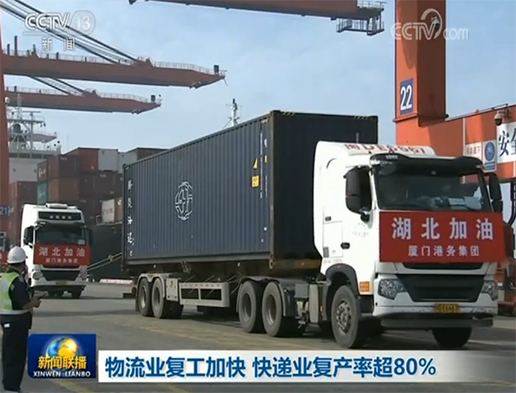 央視網(wǎng)消息(新聞聯(lián)播):物流業(yè)對(duì)統(tǒng)籌做好疫情防控和經(jīng)濟(jì)社會(huì)發(fā)展工作具有重要支撐作用,記者從國務(wù)院新聞辦3月6日舉行的發(fā)布會(huì)上了解到,目前,物流業(yè)復(fù)工有序,速度加快。