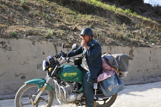 簡單吃過中飯,桑南才將郵袋綁在摩托車后座上,彎腰緊了緊鞋帶,再跨上磨得泛白的帆布郵包,驅車向大山深處進發。