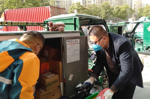 幫扶投遞期間,黨員佩戴黨徽,亮出身份,也贏得了小區物業和社區防控人員的贊揚。“這個時候,也就你們郵政還在堅持,不愧是‘國字號’。”通和易居北苑的門衛每天將門口的一塊空地打掃干凈,讓幫扶人員“擺攤”,有時還幫忙通知居民來領取郵件。