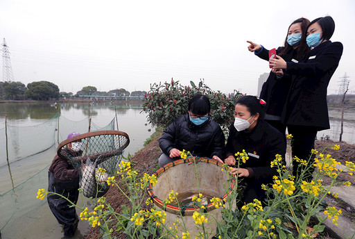近日,郵儲(chǔ)銀行浙江省德清縣支行的客戶經(jīng)理來到當(dāng)?shù)仞B(yǎng)殖戶朱曉芳(左二)的魚塘,現(xiàn)場(chǎng)了解、調(diào)查相關(guān)信息,指導(dǎo)客戶使用中國(guó)郵政儲(chǔ)蓄銀行手機(jī)銀行APP,線上申請(qǐng)極速貸。當(dāng)天,朱曉芳在郵儲(chǔ)銀行的30萬元低息貸款到賬,解了燃眉之急。