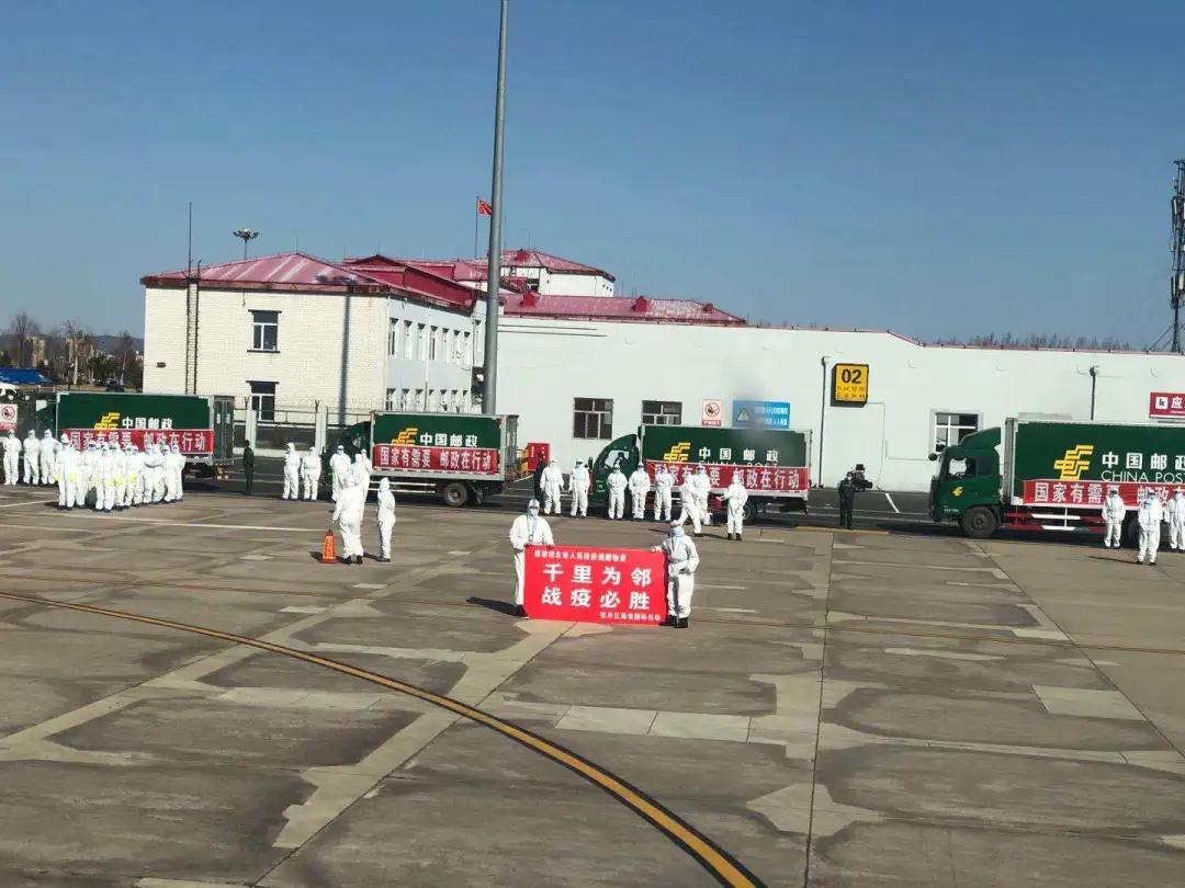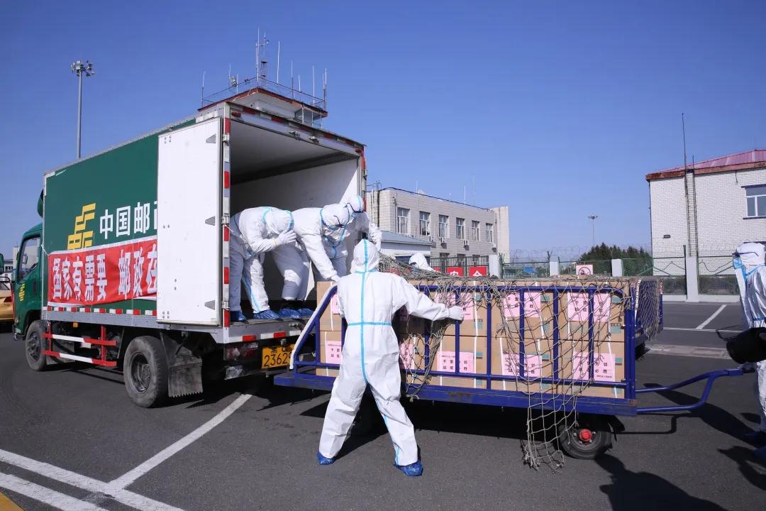 為及時將抗疫物資運送到綏芬河,黑龍江省郵政分公司召開緊急會議,相關負責人趕赴哈爾濱、牡丹江兩大機場一線指揮,并迅速組織哈爾濱郵區中心局和牡丹江市郵政分公司展開航班物資接卸及陸路運輸工作。哈爾濱郵區中心局接到通知后第一時間著手調配4臺22噸的郵政貨車,牡丹江郵區中心局緊急調配12噸、8噸、4噸等共10臺郵政貨車承擔運輸任務。