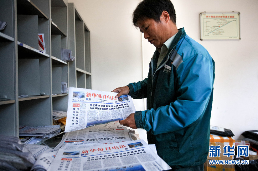 桑南才在分揀當天要投遞的郵件(5月11日攝)。新華網(wǎng) 劉東 攝