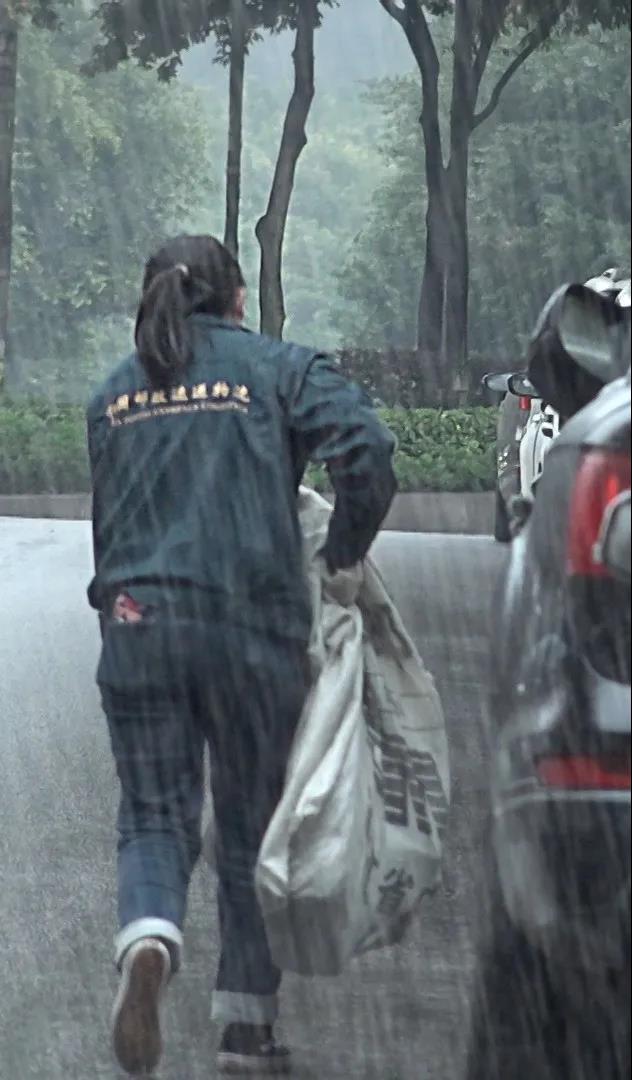 3月5日,重慶江北郵政寄遞事業部運管部投遞員陳俊蘭在投遞教材過程中突降大雨,為確保時限,陳俊蘭冒雨迅速轉移教材。
