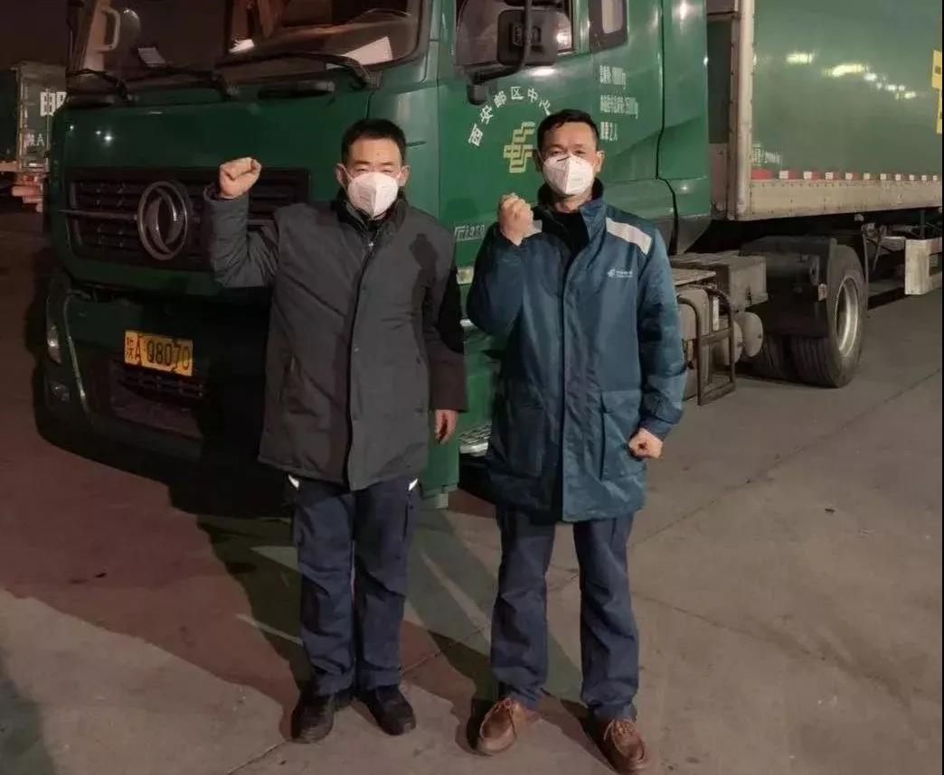 繼張忠海和先進員工喬毅軍這對“黃金搭檔”第一次逆行開路之后,同事們紛紛請纓,自愿向武漢“逆行”。當時,陜西向武漢援助的各種醫(yī)療物資急劇增加,西安郵區(qū)中心局根據(jù)情況陸續(xù)又增加了兩輛35噸級的郵車,組成三組臨時車隊,為了防控感染,實行定車定人,包括張忠海、喬毅軍在內(nèi)共六名司機專線為武漢運送抗疫醫(yī)療物資。
