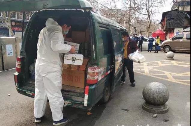 2月24日,為配合武漢市疫情防控期間社區團購和無接觸配送工作,武漢郵政在全力確保全市防疫物資、醫療物資、各類郵件“最后一公里”寄遞服務的同時,想方設法調配出10輛郵車,抽調12名黨團員組建“郵政志愿者團隊”,助力社區以及部分援漢醫療隊團購生活物資配送工作。