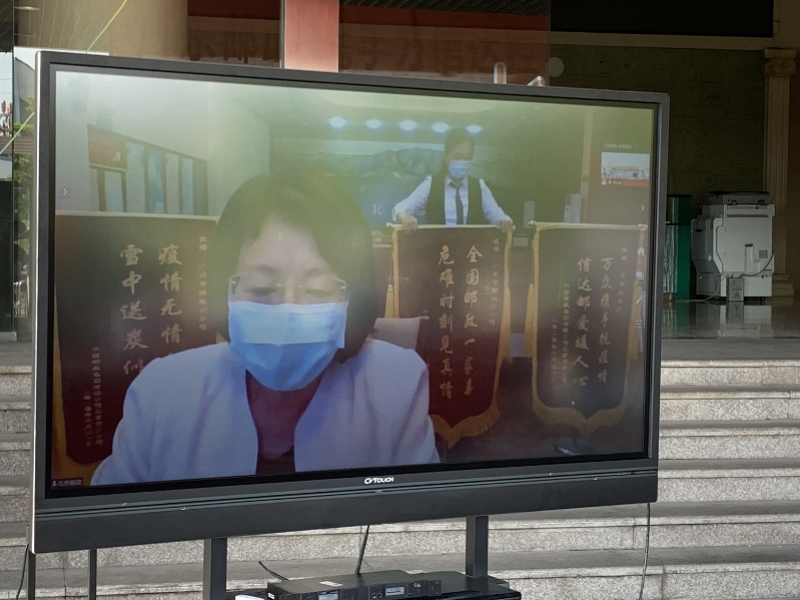 儀式上,廣州郵政與北京郵政通過現場電視大屏,進行了遠程網絡連線?!半m然天各一方,但視頻連接著你我。”北京郵政副總經理王艷十分感動,她在視頻中展示了三面錦旗,向廣州表示,“疫情無情人有情,雪中送碳是親人!”
