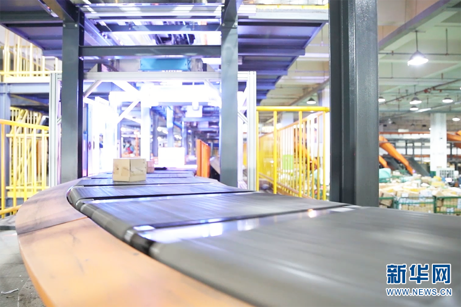 7月4日,云南郵政陸運中心對寄遞郵件進行智能化分揀。(新華網發)